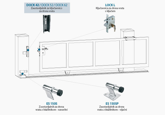 Zaustavljalnik DOCK 42 širine 42 mm za ključavnico za drsna vrata.